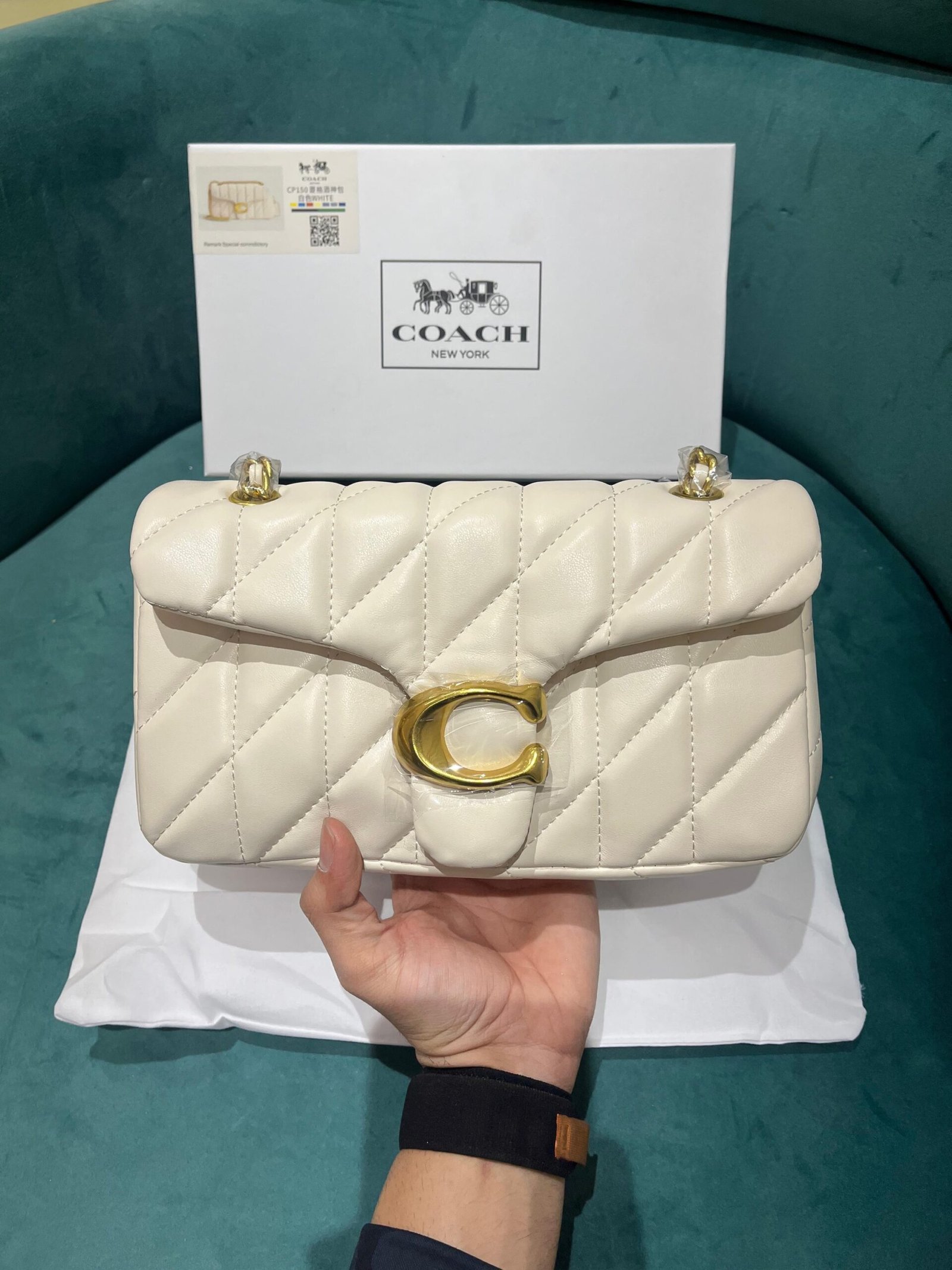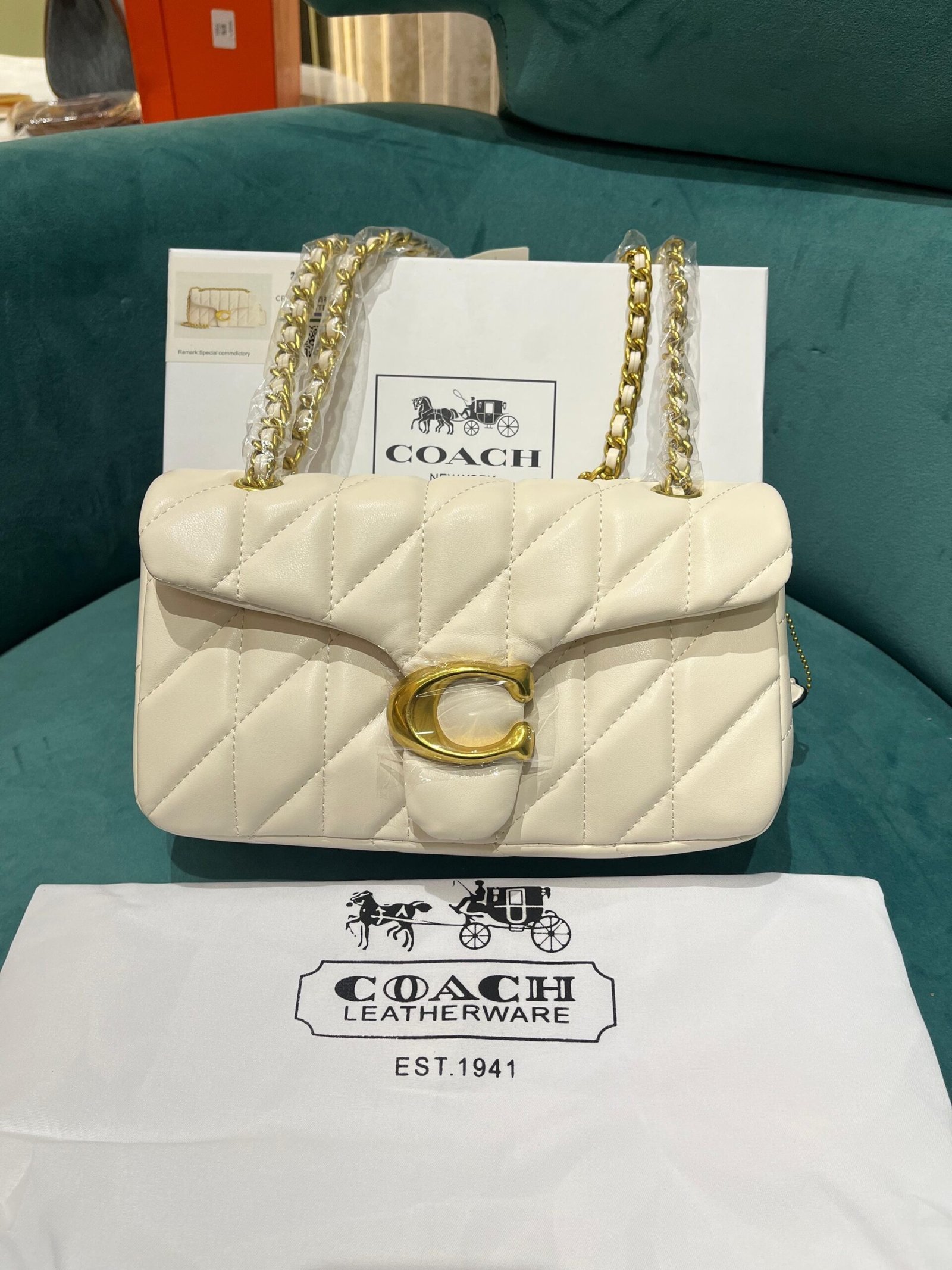 *Coach Soft Chalk Tabby 26 Quilted Medium Leather Shoulder Bag With OG Box & Dust Bag (CP-150-White)🤍